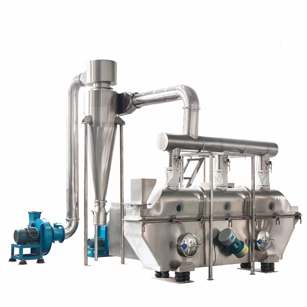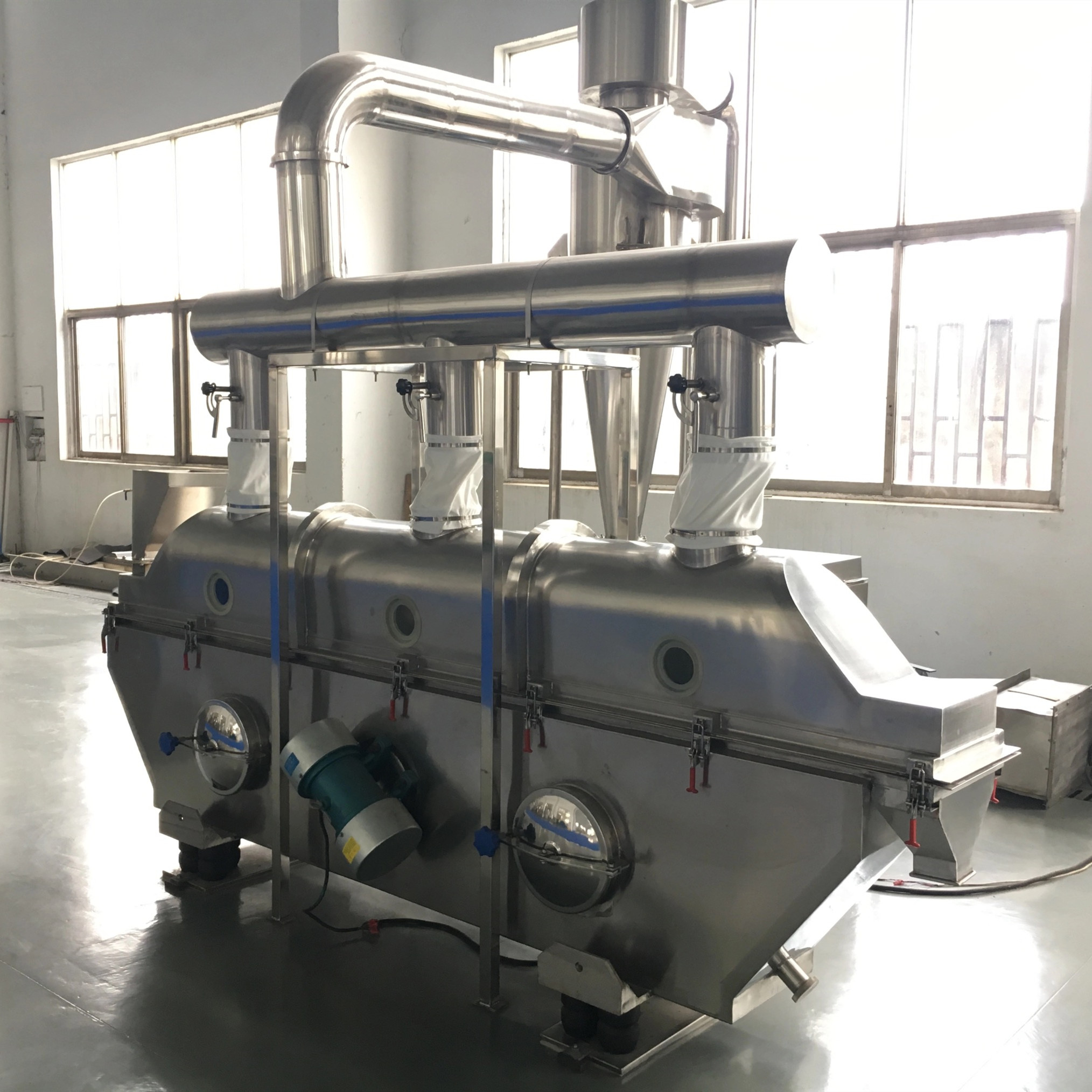 L'essiccatore a letto fluidizzato di vibrazione è un genere di dispositivo di secchezza intensificato con scopo speciale. È usato solitamente per l'essiccazione finale dei materiali. Poichè la fluidificazione materiale è assistita tramite la vibrazione meccanica nel processo di secchezza, è non solo utile alla turbolenza dello strato limite ed al potenziamento del trasferimento di massa e calore, ma inoltre assicura l'impianto di essiccazione per lavorare nelle circostanze meccaniche di flusso relativamente stabile. Questa attrezzatura ha una buona funzione di secchezza, ma anche secondo i bisogni del processo con materiale che raffredda, schermante e trasportante i processi. Attualmente, è stata ampiamente usata nello zucchero, nella medicina, in fertilizzante, nell'industria chimica, in plastica, nei prodotti lattier-caseario, nell'industria saliera e nelle industrie di metallurgia e di estrazione mineraria. La tecnologia è basicamente matura e è stato serializzato.