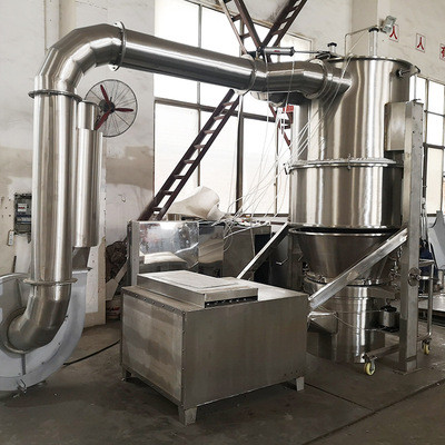Il materiale è sospeso nell'ambito dell'azione di flusso di aria calda pulito (pressione negativa) per formare uno stato fluidificato e la sua superficie è in contatto completo con l'aria calda ed il calore è riscaldato uniformemente ad uno stato di scambio termico, che ha alta efficienza estremamente. Fornito di un sistema a spruzzo adatto e dei miglioramenti ulteriori nella struttura funzionale del letto fluido, esibisce giustamente le caratteristiche di granulazione a letto fluidizzato dell'essiccaggio per polverizzazione e rivestimento, cioè, si è trasformato in in un genere di essiccazione, di granulazione e di rivestimento. Utilizzi l'attrezzatura trattata.