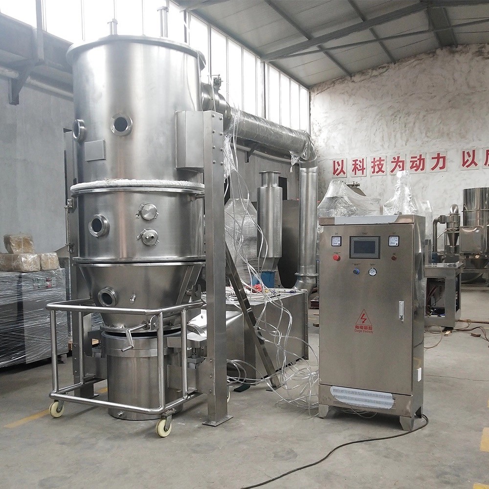 Metta la polvere per granulazione o il materiale granulare per ricoprire nel letto fluido. L'aria fredda entra dalla camera di riscaldo alla parte posteriore del motore principale. Dopo che l'effetto primario ed il filtro intermedio da effetto, il radiatore è riscaldato alla temperatura richiesta dall'ingresso dell'aria e poi entra nel letto fluido. È fluidificato nel letto ed il raccoglitore per granulazione è inviato all'atomizzatore due-fluido dalla pompa per infusione ed ha spruzzato al materiale fluidificato dopo atomizzazione. Le polveri si gettano un ponte su e si riuniscono nei granelli e crescono o formano un film sul materiale da ricoprire. Dopo che l'acqua si volatilizza, è presa dalla macchina dall'aria di scarico.
