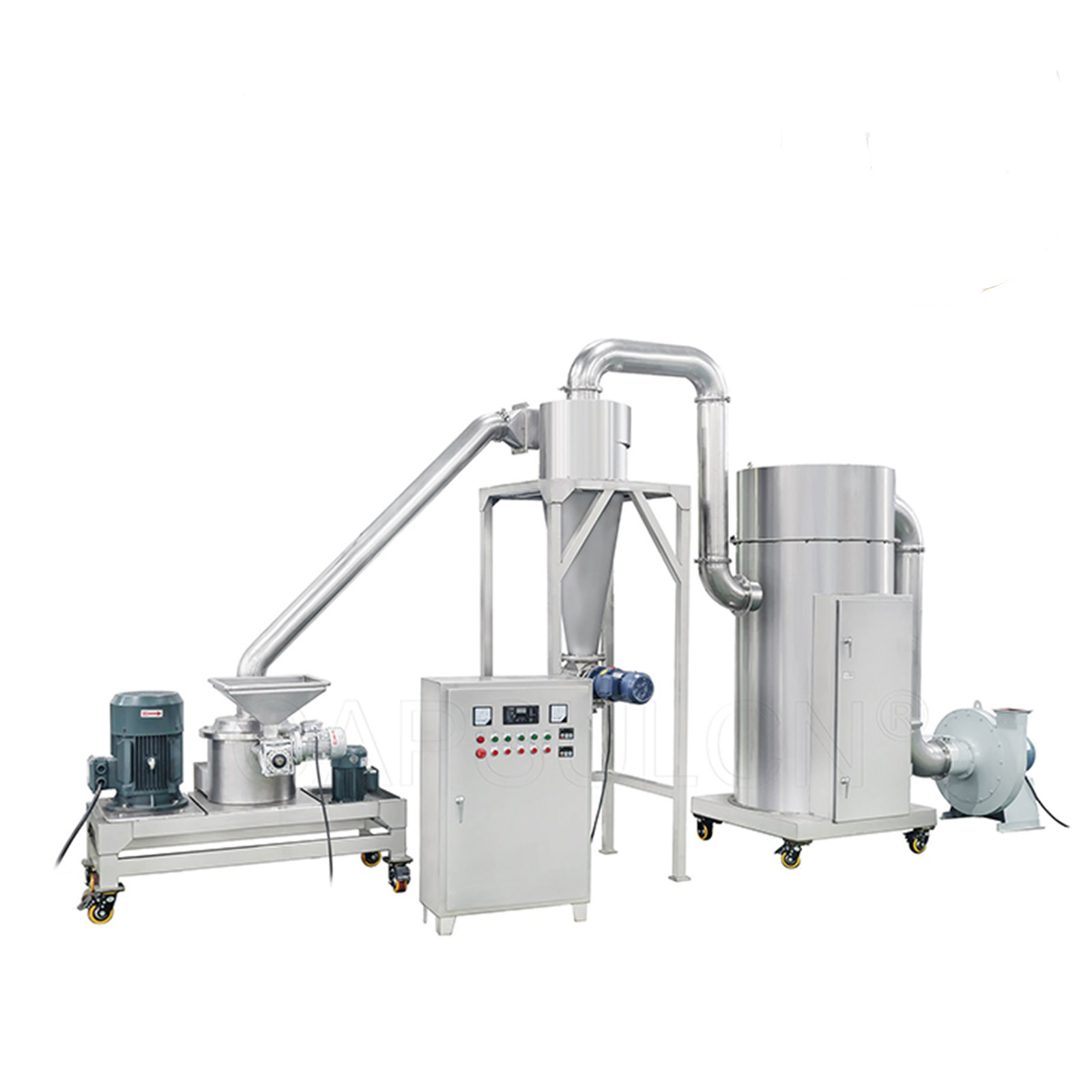 L'unità di polverizzazione ultra-fine WKS-20 è destinata e sviluppata dalla nostra fabbrica per assorbire e digerire i vantaggi dei paesi stranieri. È progettata e sviluppata secondo gli stati nazionali del mio paese. Bella, utilizzazione elastica, piccola orma, vasta gamma delle applicazioni ecc. Questa macchina è ideale per schiacciare e l'essiccamento i materiali e dei minerali non fibrosi. Rispetto ai modelli domestici, il prodotto ha una dimensione delle particelle moderatamente bassa e dimensione delle particelle uniforme ed è particolarmente adatto a schiacciare dei materiali sensibili al calore quali lo zucchero, la polvere di plastica ed i materiali medicinali cinesi. Questa unità è composta di motore principale, motore ausiliario, raccogliendo la conduttura ed il dispositivo di controllo elettrico. C'è un collettore di polveri del ciclone e un collettore di polveri del sacchetto filtro nella macchina ausiliaria, che può anche essere fabbricata ed utilizzata esclusivamente secondo i requisiti dell'utente. La macchina principale è fornita di dispositivo centrifugo di classificazione, che può non solo completare schiacciare, ma inoltre ha una funzione di classificazione. La tosatura della centrifuga di selezione del vento, nessuno schermo e nessuna maglia, particelle della polvere possono essere regolato arbitrariamente, dopo che il materiale è schiacciato, si trasportano allo sbocco della valvola di scarico da pressione negativa soddisfare le richieste del prodotto. Questa unità è una buona macchina per schiacciare i materiali nel farmaceutico, nell'alimento e nelle industrie chimiche.