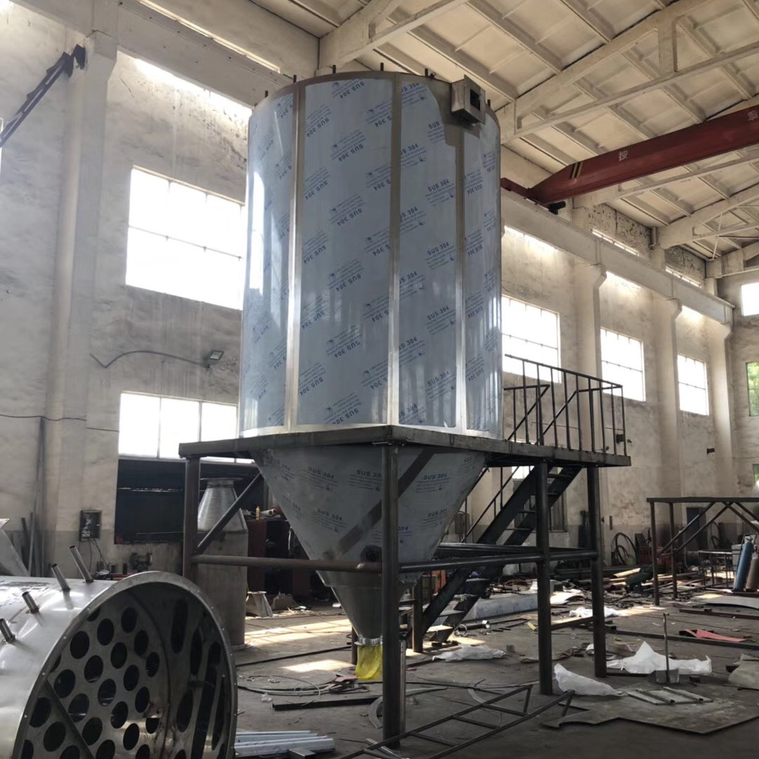 Dopo la filtrazione ed il riscaldamento, l'aria fresca calda prendpartee al distributore commerciale dell'aria alla cima dell'essiccatore, distribuita uniformemente nel modo a spirale da fino a giù. Allo stesso tempo, il liquido d'alimentazione è pompato all'atomizzatore superiore, quindi per essere spruzzato a goccia estremamente fine del liquido della foschia. Con il periodo ridotto di contatto diretto con aria calda, l'umidità è evaporato immediatamente, il solido rimane essere polvere. La polvere asciutta sarà scaricata continuamente dal fondo della torre d'essiccamento ed il collettore del ciclone, l'aria di scarico sarà scaricato dopo la pulizia.