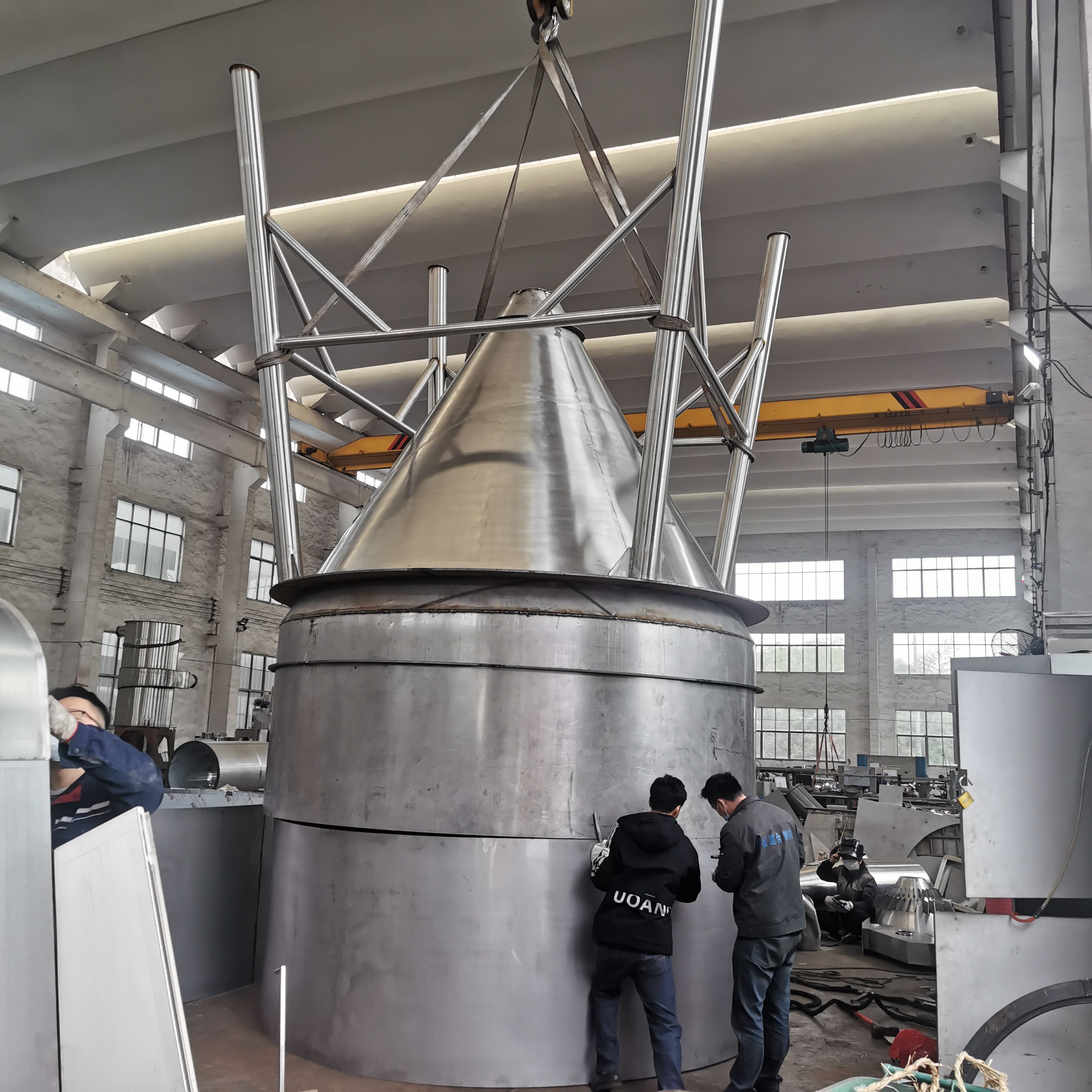 L'aria è filtrata anche e riscaldata nella cima del distributore commerciale dell'aria di essiccatore, aria calda nella spirale nell'essiccatore. Il liquido materiale è spruzzato in una gocciolina liquida con precisione atomizzata tramite il nebulizzatore centrifugo ad alta velocità alla cima del corpo della torre e può essere contattato con l'aria calda in un periodo ridotto stesso e può essere asciugato nei prodotti finiti. Il prodotto finito è scaricato continuamente dal fondo della torre d'essiccamento e del ciclone ed il gas di scarico è estratto dal fan del progetto.